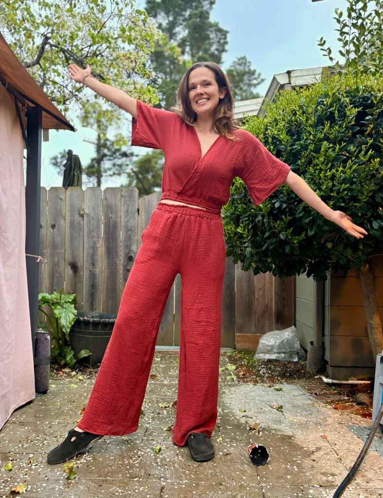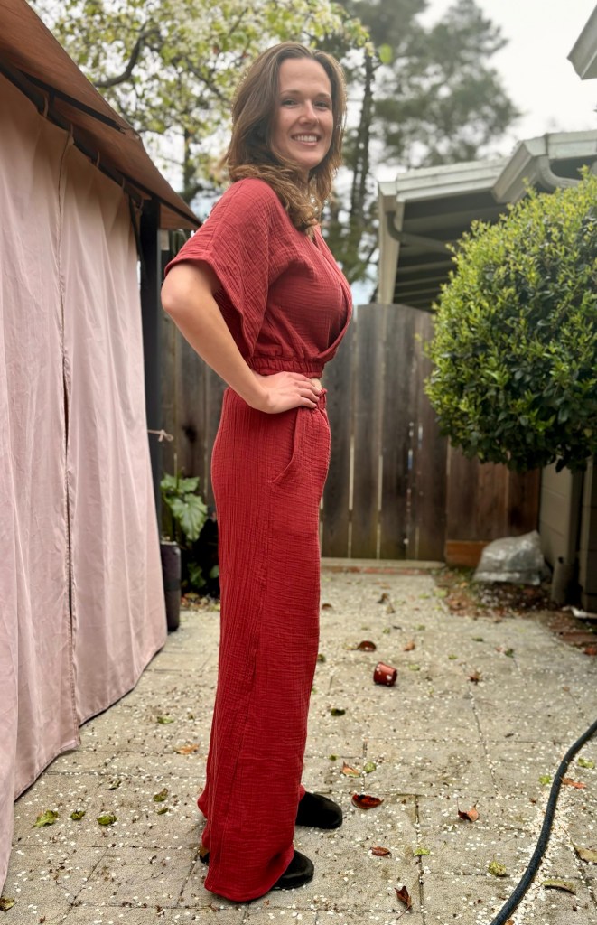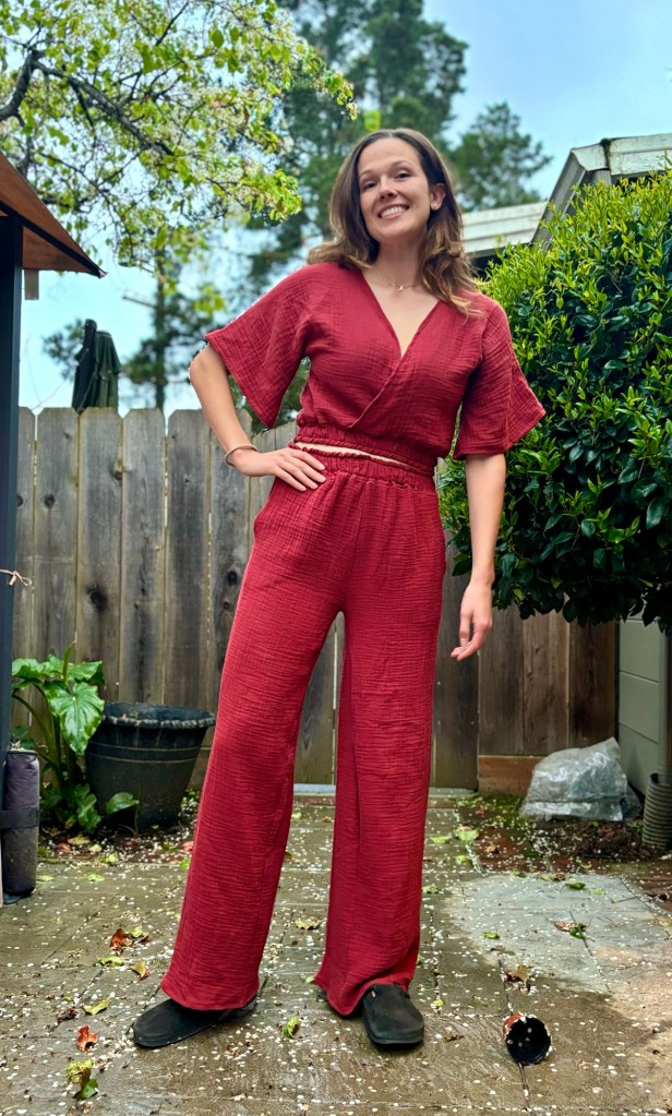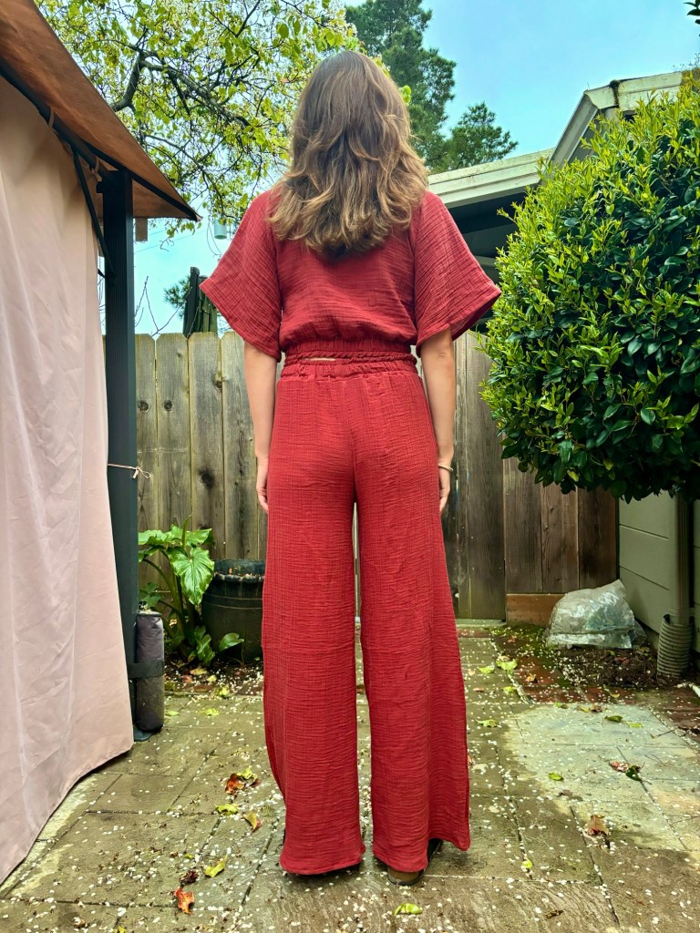 I knew I had to make this in cotton gauze, for a redemption story on the dumb J. Jill coordinating set I bought last summer that was made of black cotton gauze. It was “tall” sized yet my shoulders were hulking out of it, the top was a crop tent, and the pants felt like they were just slightly past my knee to appear as terrible highwater capris. The previous resident of our house got a J.Jill catalog which is how I ended up buying it, I just really fell for the styling on the catalog models. Ugh. I sold it for 20 bucks on Poshmark at least.