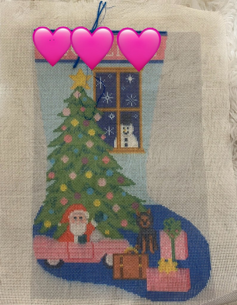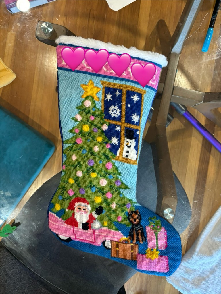 1.5 years from the initial blank canvas purchase, I finally have a finished Christmas stocking for my oldest! This was my very first needlepoint project. I completed the needlepoint portion before I started sewing-so it sat in my closet after I balked at finishing costs for many months.