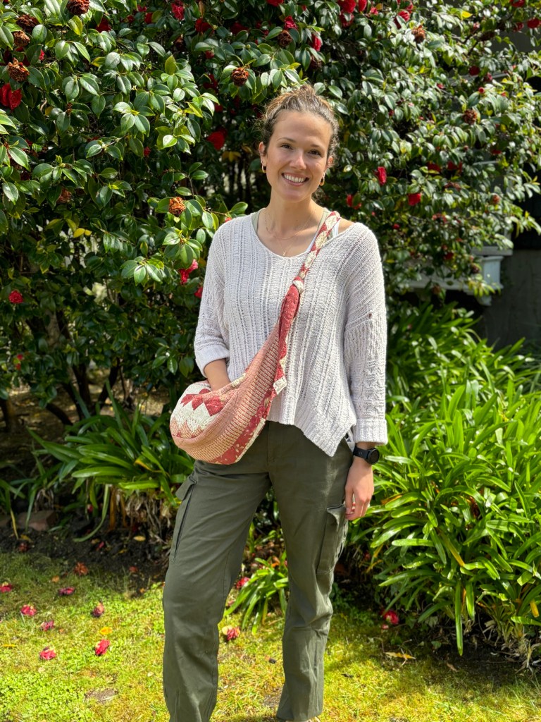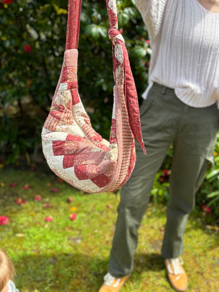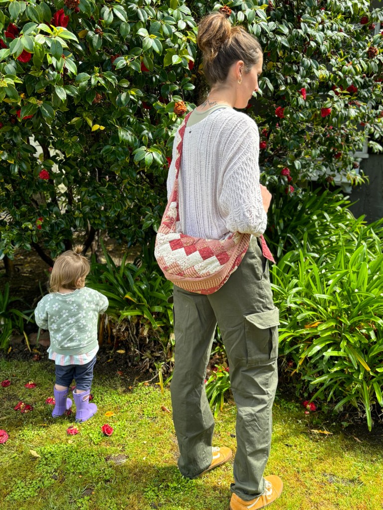 When I initially thought about making a bag, I started looking up belt bags, but realized those are a bit played out at this point. That would have been a nice idea 3 years ago. I took some time to people watch a bit more and realized the new shape is the crescent bag. So, I decided on the “Bestie Bag” pattern from Blackbird Fabric.