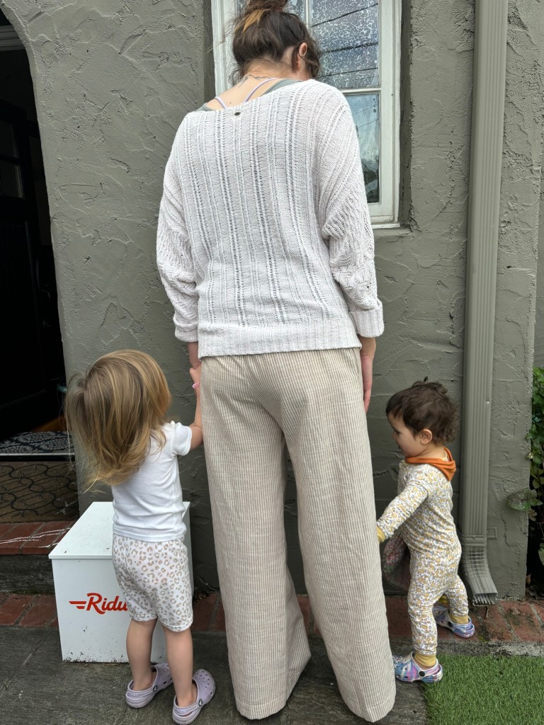 I’m not totally sure what type of fabric the pants are- but it feels like a linen blend. I would be pretty surprised if it was all linen, I haven’t attempted a burn test or anything to figure this out. Who cares! It was five dollars!